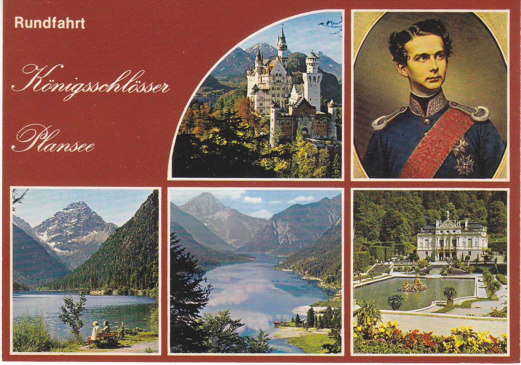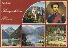 POSTCARD #132 Rundfahrt-Königsschlösser Plansee. [Round Trip, King's Castle on Plansee Lake, Tirol, Austria]. 205/198. Kunstverlag Franz Milz, Reutte/Tirol. 5.75" x 4" EXC