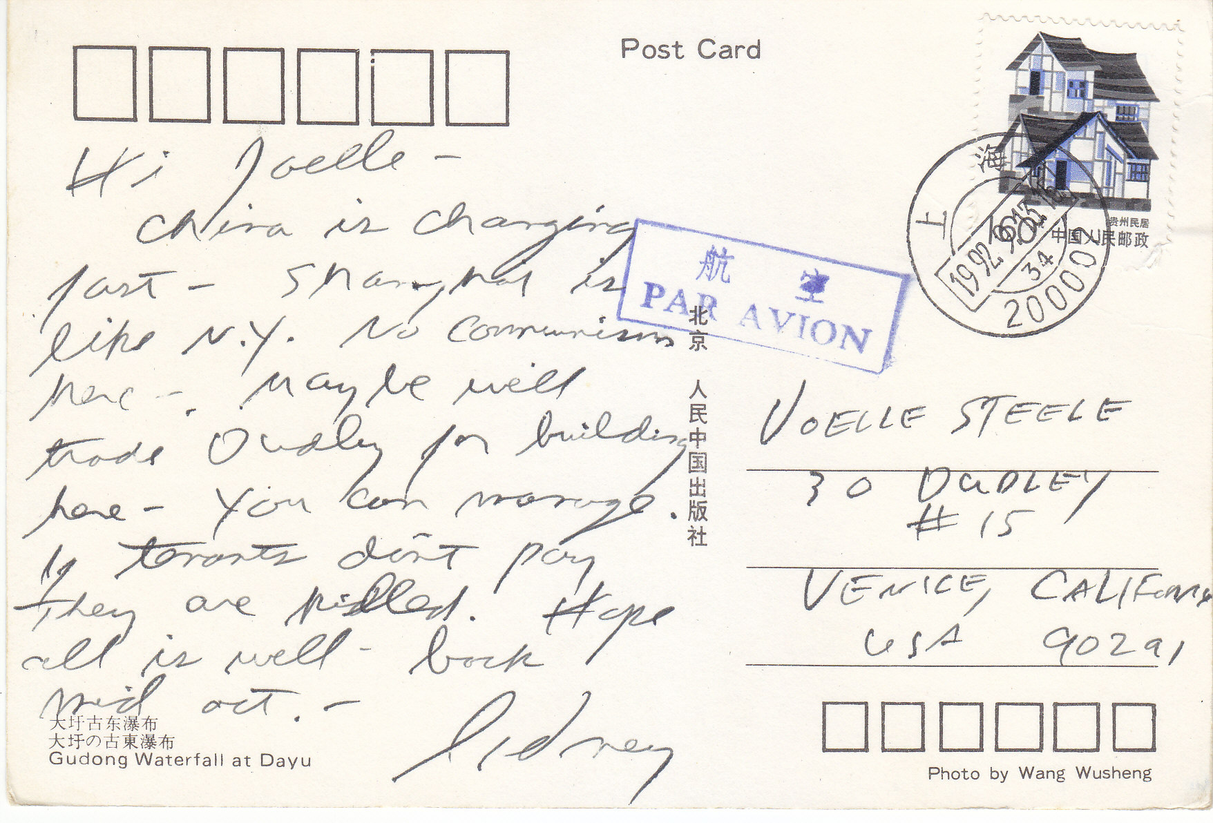 POSTCARD #149 Gudong Waterfall at Dayu [China]. Photo by Wang Wusheng. 5.75" x 4" VG