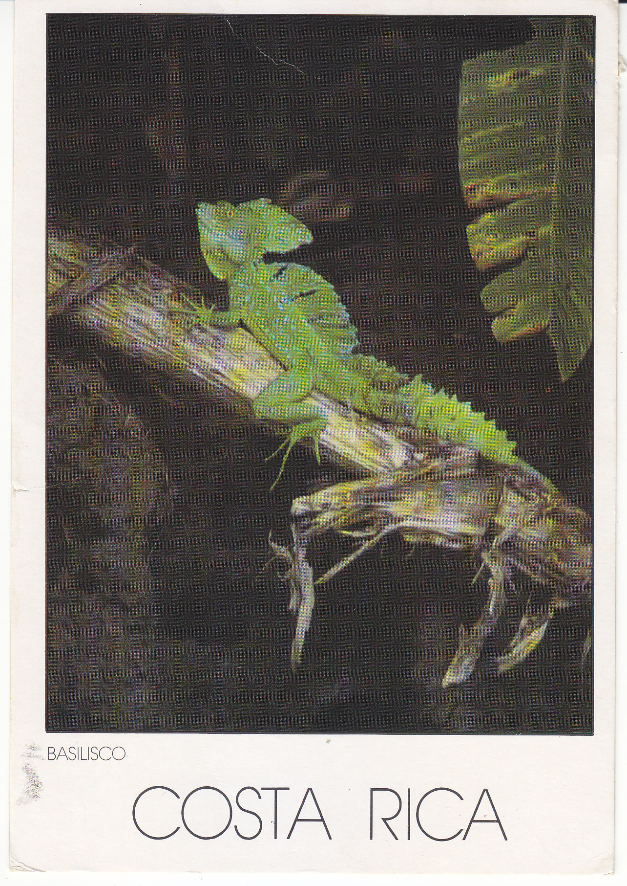 POSTCARD #151 Basilisco - Basiliscus americanus, Costa Rica. 27. Edita, Publicacciones Iberia S.A. Tel. 35-0761 Fax 40-1108. Derechos Reservados. Foto, Jeffrey Wiles. 6" x 4" VG
