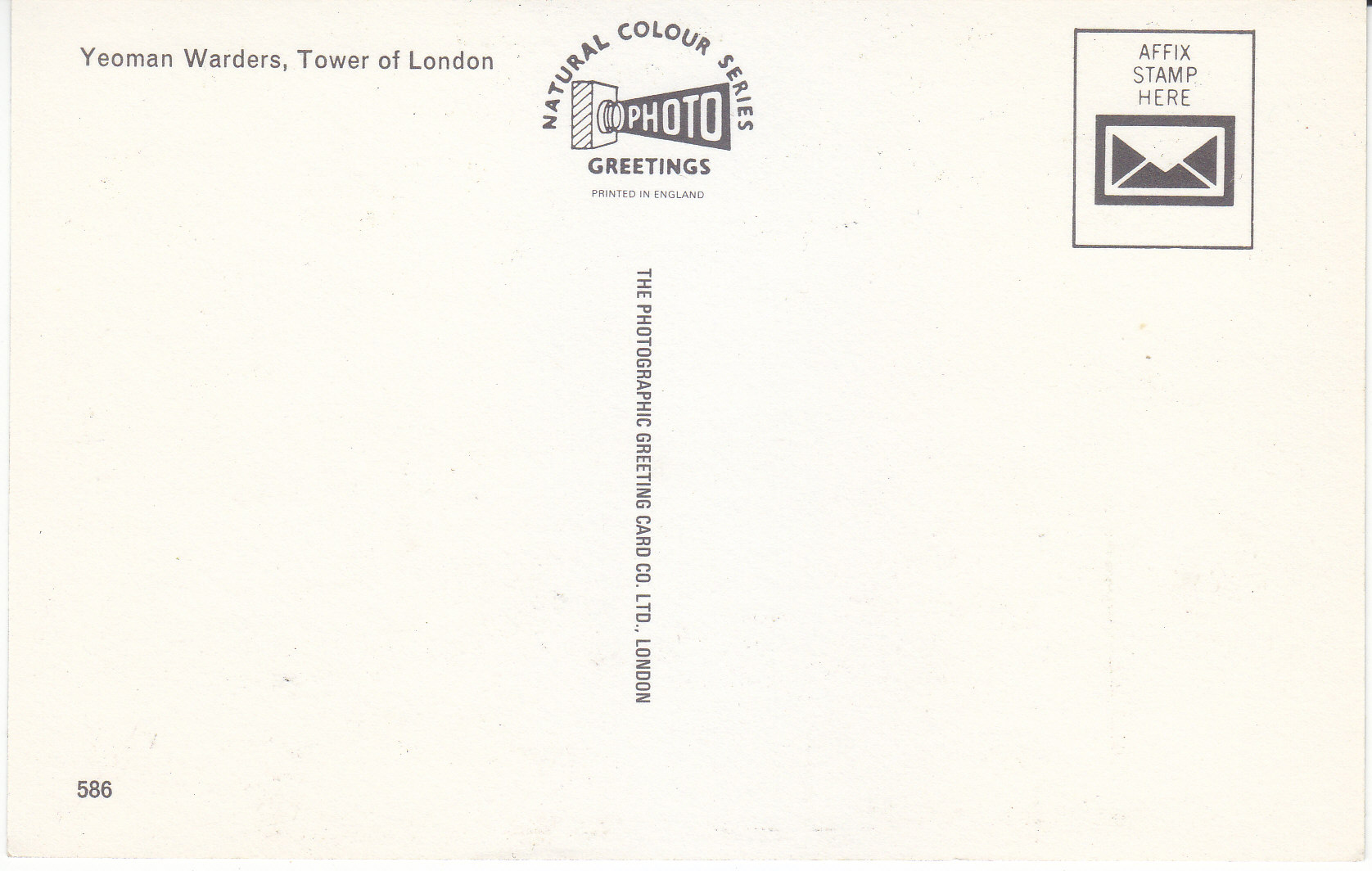 POSTCARD #177 YoYeoman Warders. Tower of London, London [England]. Natural Colour Series Photo Greetings. Printed in England. 586. The Photographic Greeting Card Co. Ltd., London [England]. 5.5" x 3.5" EXC
