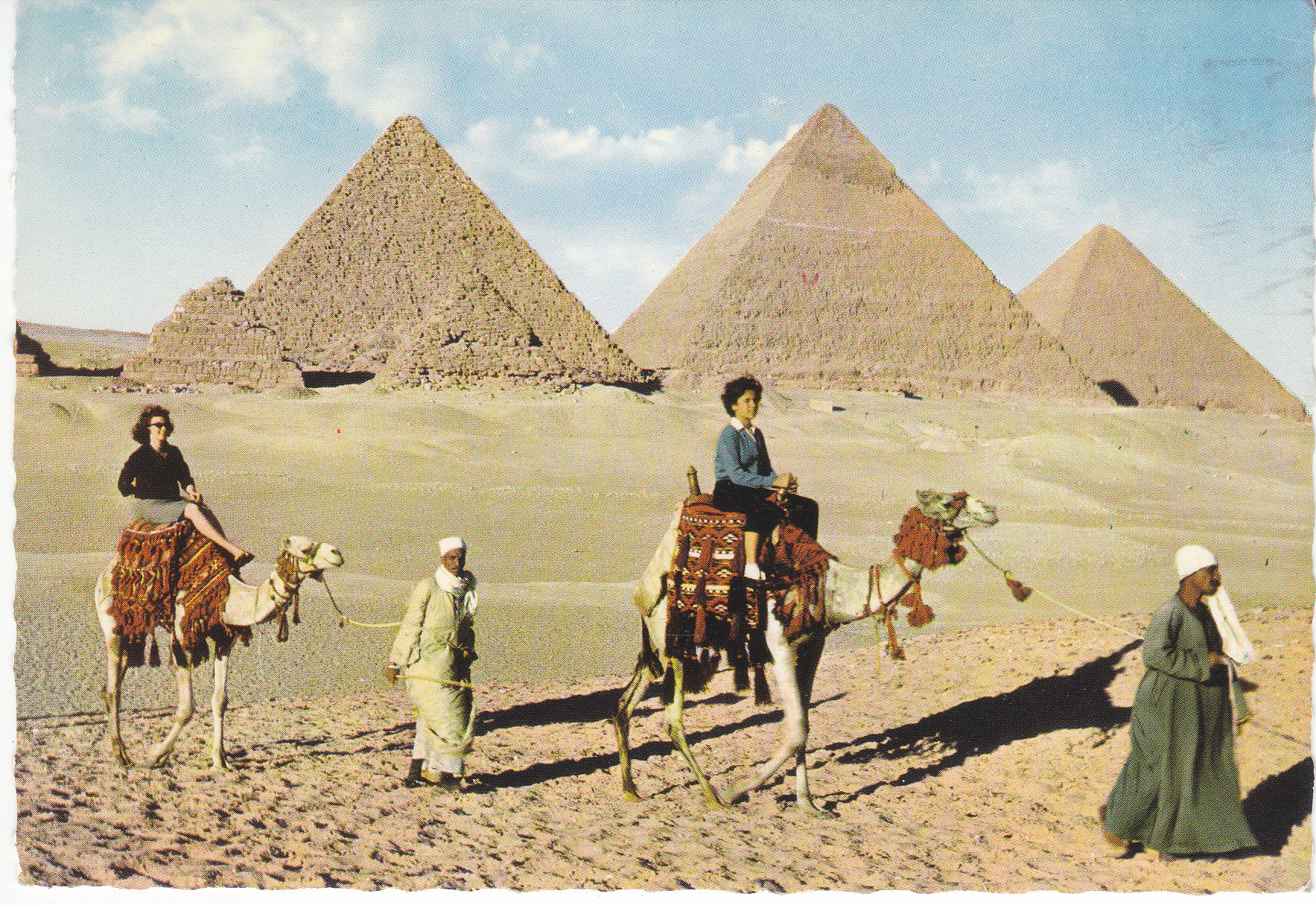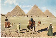 POSTCARD #215 Tourist Camel Ride near the Giza Pyramids. 7. Post Card A.R. Egypt. Pub. Dar El Kitab El Guedid, Galaa St., Cairo (Egypt). 6.5" x 4.5" EXC