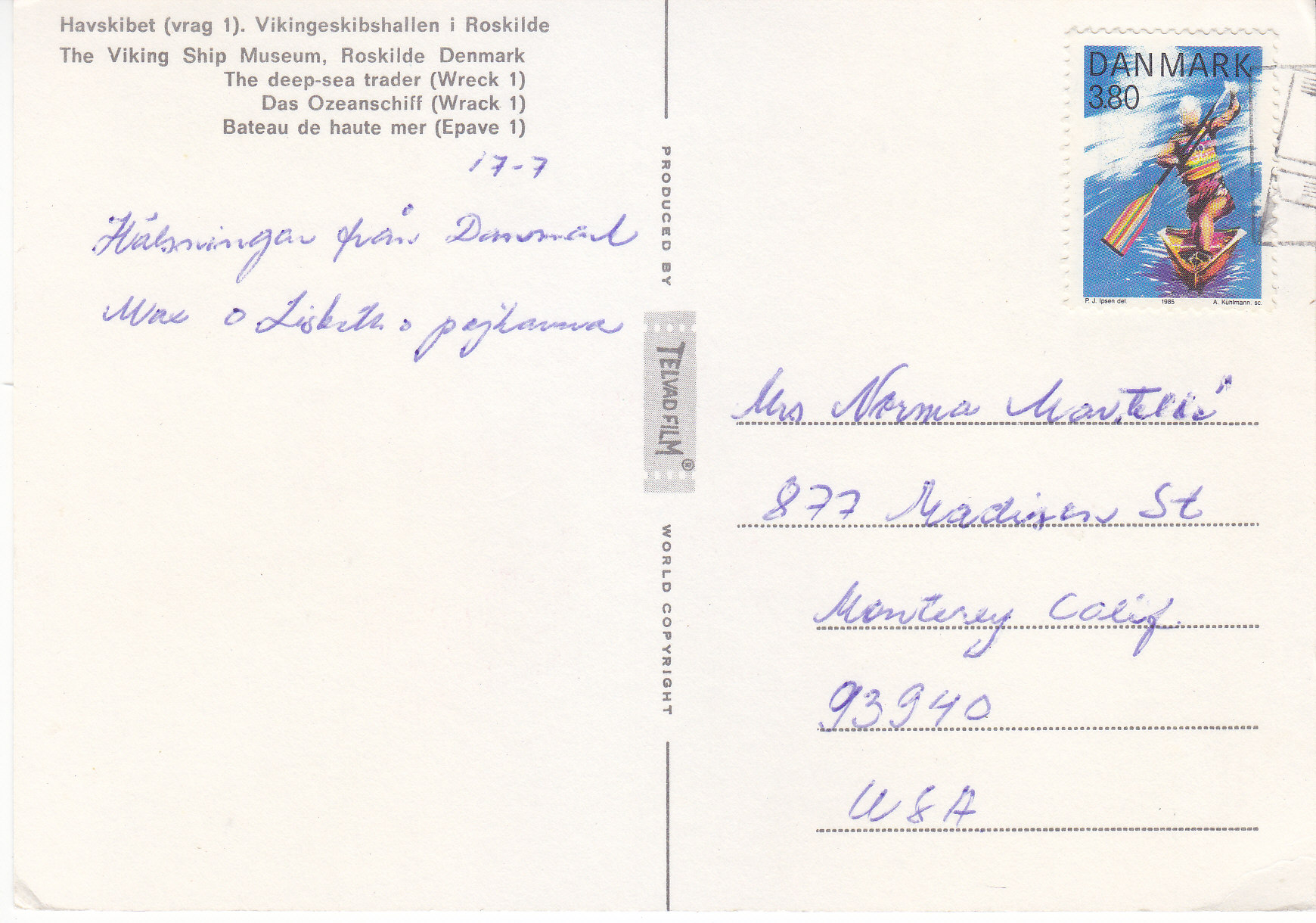 POSTCARD #273 Havskibet (vrag1). Vikingeskibshallen i Roskilde. [Viking Ship Museum, Roskilde, Denmark. The deep-sea trader (Wreck 1).] Produced by Telvad Film, World Copyright. 5.75" x 4" VG