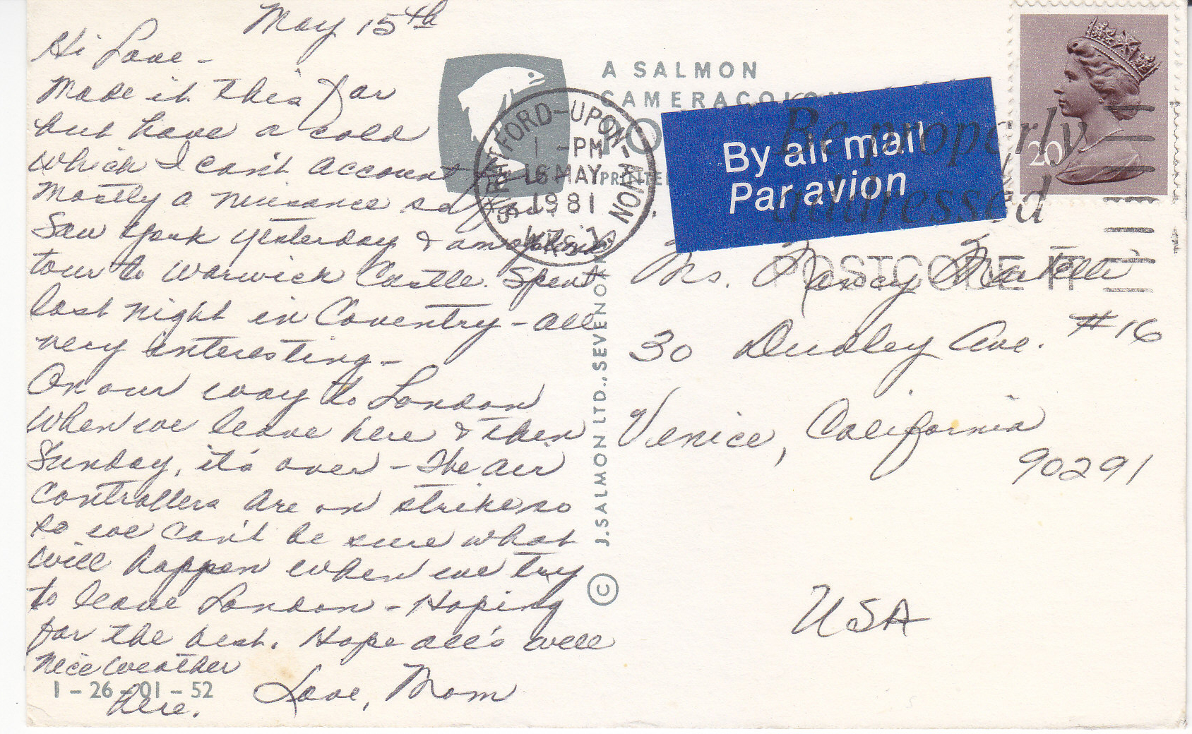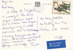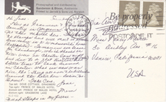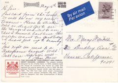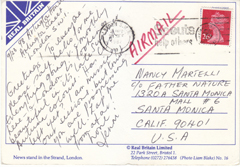 POSTCARD #047 News Stand in the Strand, London [England]. Real Britain Limited, 22 Park Street, Bristol 1 [England]. Telephone (0272) 276437. (Photo Liam Blake) No. 16. Post card is from September 23, 1982, and the sender is Jenni Hopkins, former wife of actor Anthony Hopkins. 6" x 4" VG