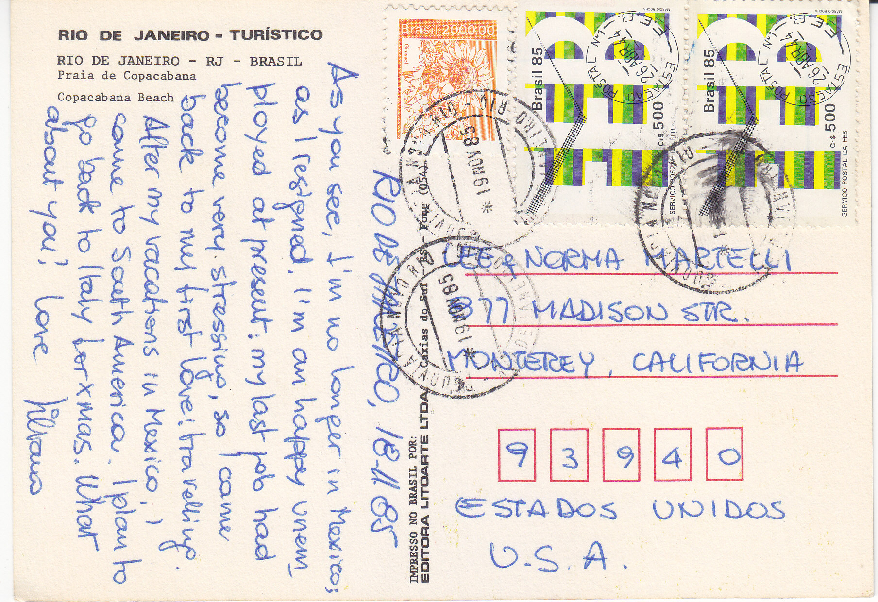 POSTCARD #340 Copacabana Beach, Rio de Janeiro, RJ, Brasil [Brazil]. Rio de Janeiro-Turístico. Impresso No Brasil por: Editora Litgarte Ltda. Caxias do Sol, RS. Fone (054). 6" x 4" EXC