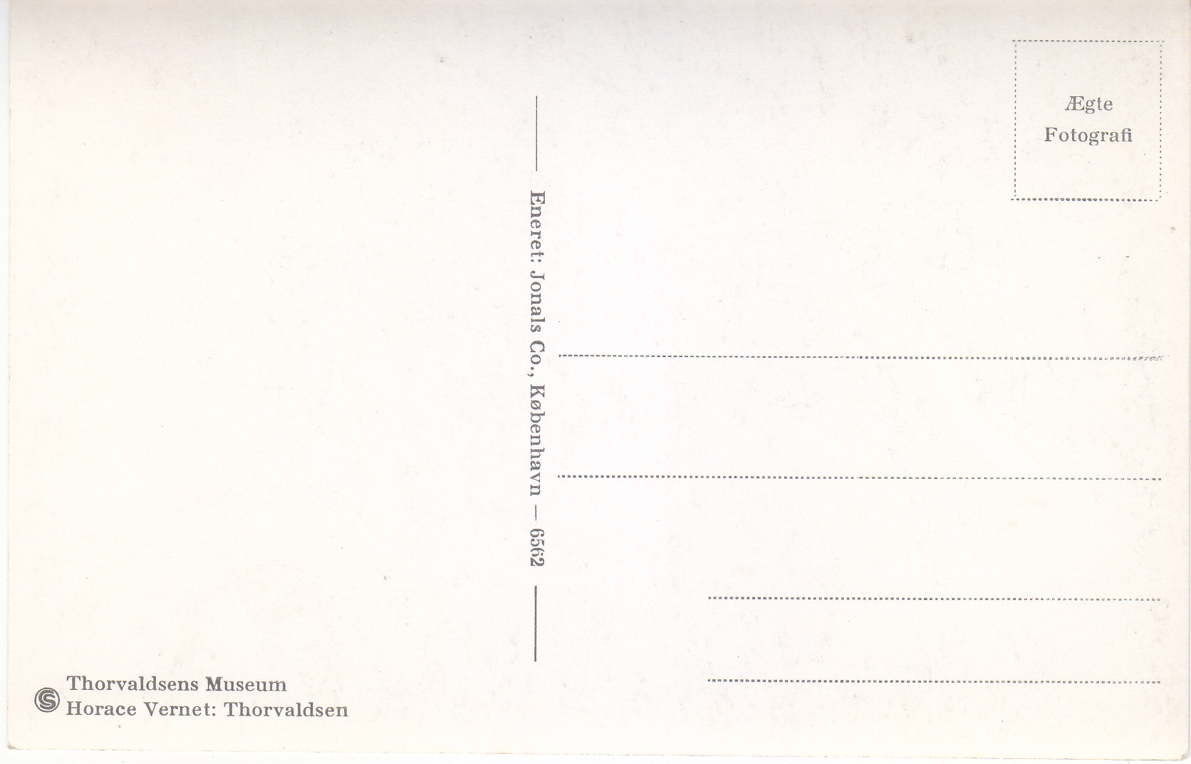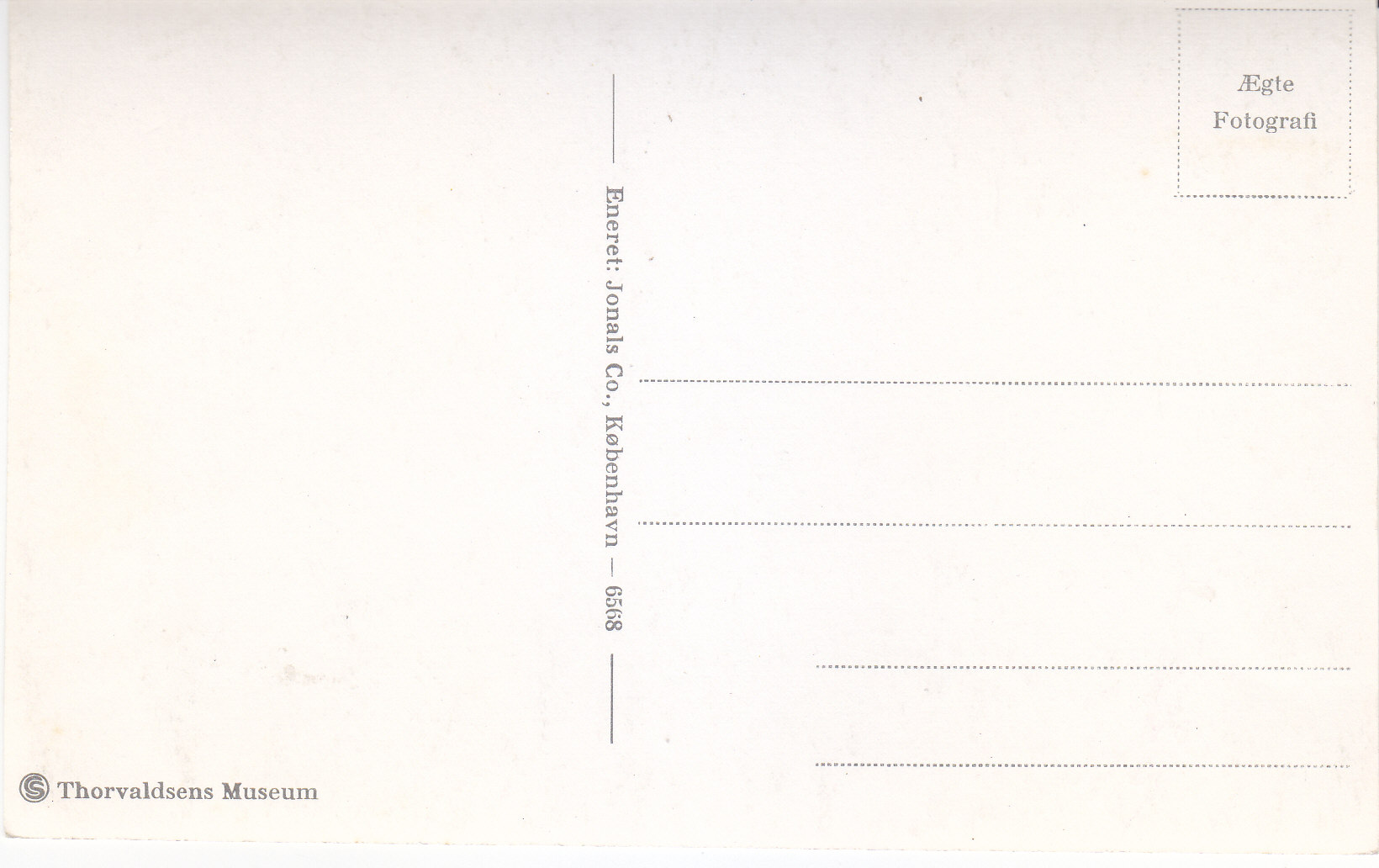 POSTCARD #352 Thorvaldsens Museum. Eneret: Jonals Co., København [Copenhagen, Denmark], 6562. AEgte Fotografi. 5.5" x 3.5" EXC