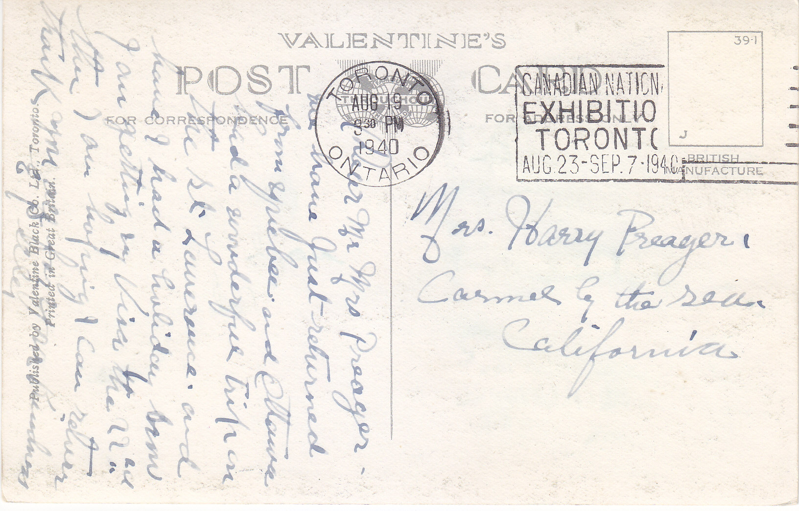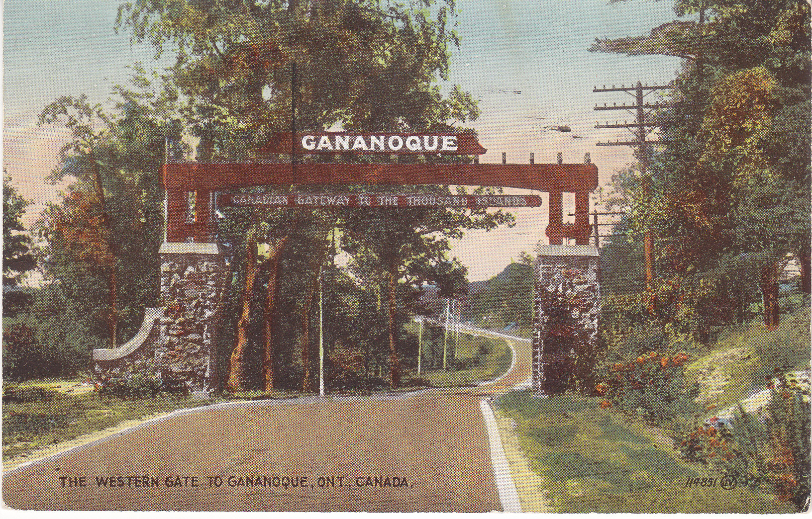POSTCARD #377 Gananoque-Canadian Gateway to the Thousand Islands. The Western Gate to Gananoque, Ont., Canada. Valentine's Post Card. British Manufacture. Published by Valentine Black Co. Ltd., Toronto [Canada]. Printed in Great Britain. 5.5" x 3.5" VG