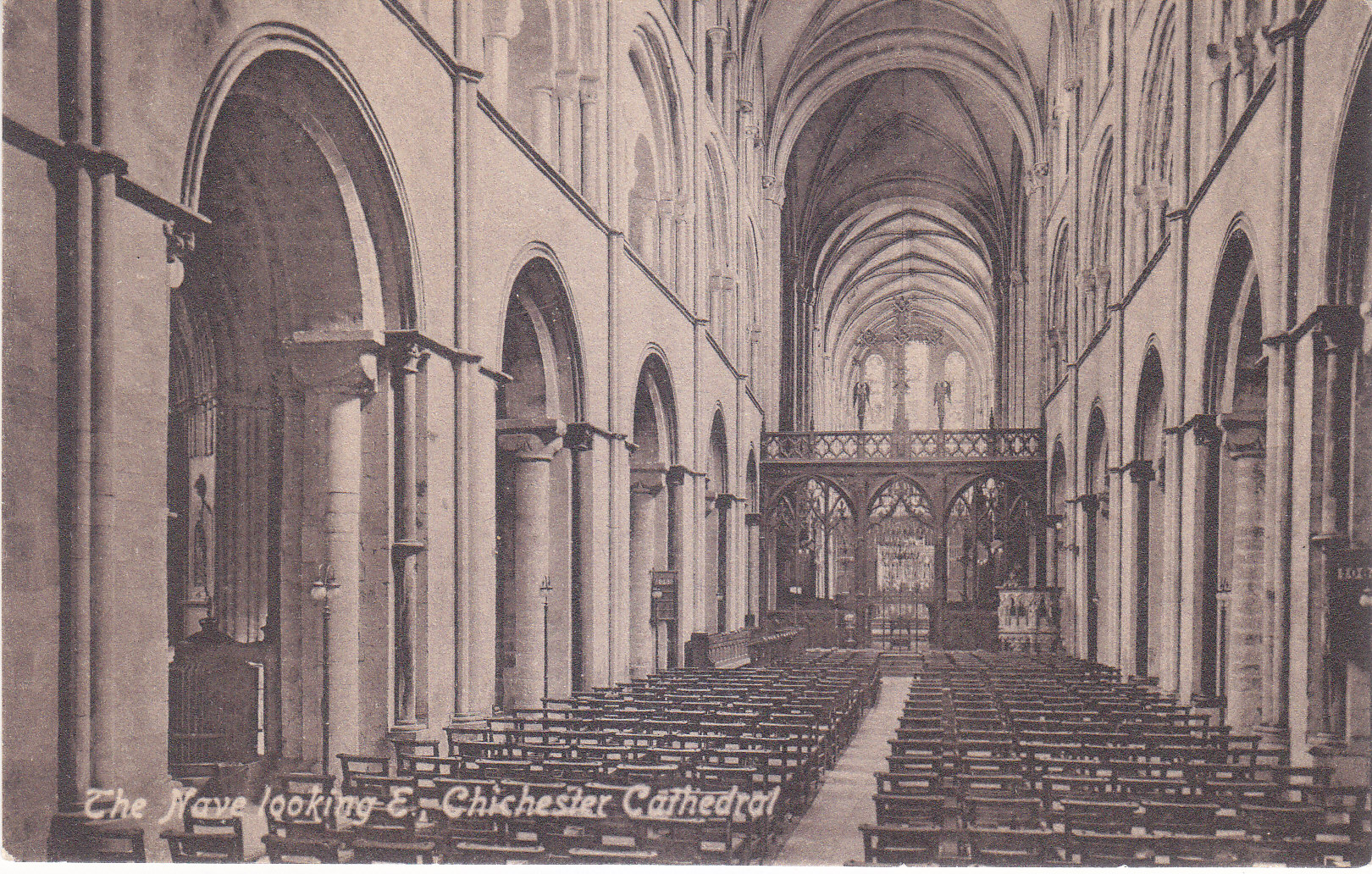 POSTCARD #393 The Nave looking E., Chichester Cathedral [Chichester, West Sussex, England]. Valentine's Series. British Manufacture. Printed in Great Britain. 5.5" x 3.5" EXC
