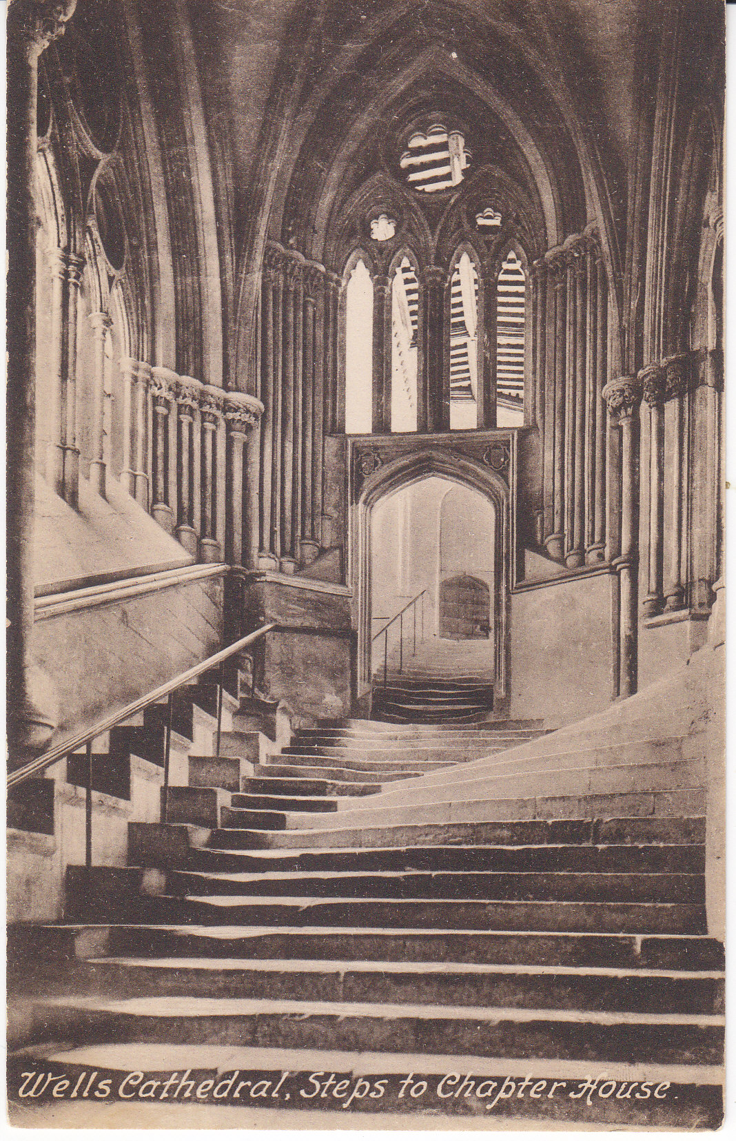 POSTCARD #408 Steps to Chapter House, Wells Cathedral [Wells, Somerset, England]. F. Frith & Co. Ltd. Reigate [Surrey, England]. No. 2568B. Frith's Series. Printed in England. 5.5" x 3.5" VG