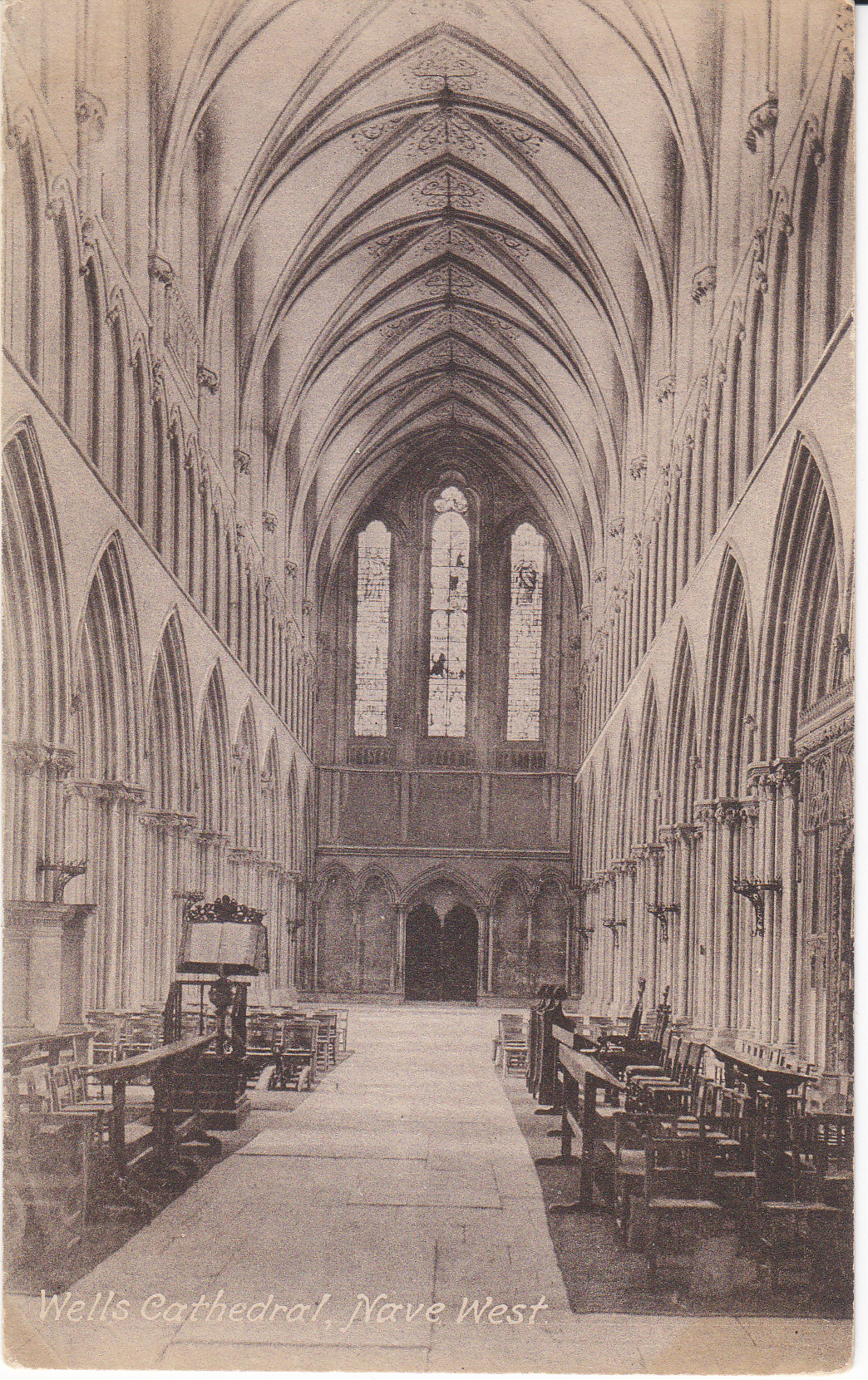 POSTCARD #410 Nave West, Wells Cathedral [Wells, Somerset, England]. F. Frith & Co. Ltd. Reigate [Surrey, England]. No. 2562B. Frith's Series. Printed in England. 5.5" x 3.5" EXC