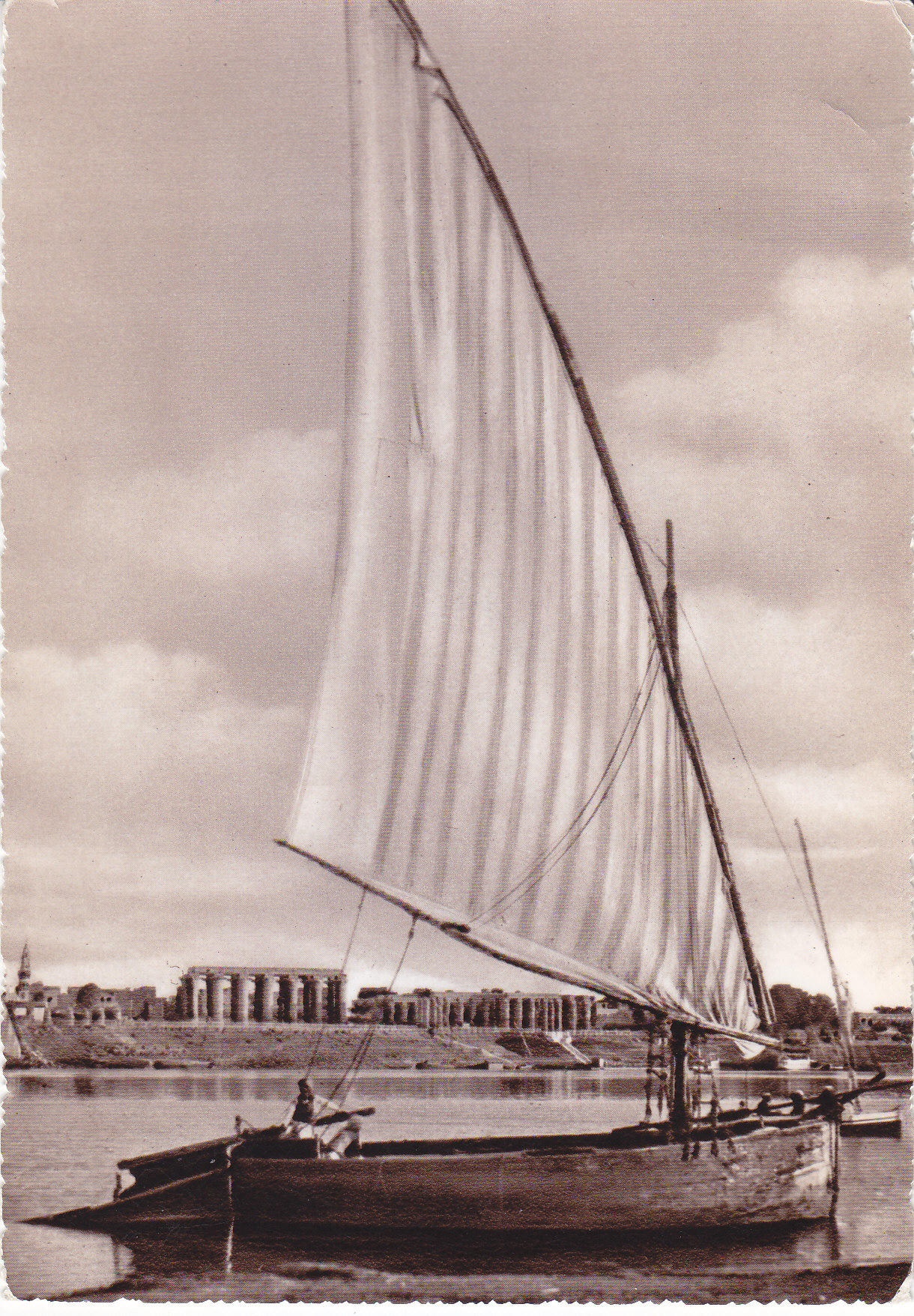 POSTCARD #422 Nile Sailing Boat and Luxor Temple, Luxor [Egypt]. No. 206. Post Card Egypt. Photo and Copyright by Lehnert & Landrock. K. Lambelet Succ.-Cairo [Egypt]. 4" x 5.5" VG
