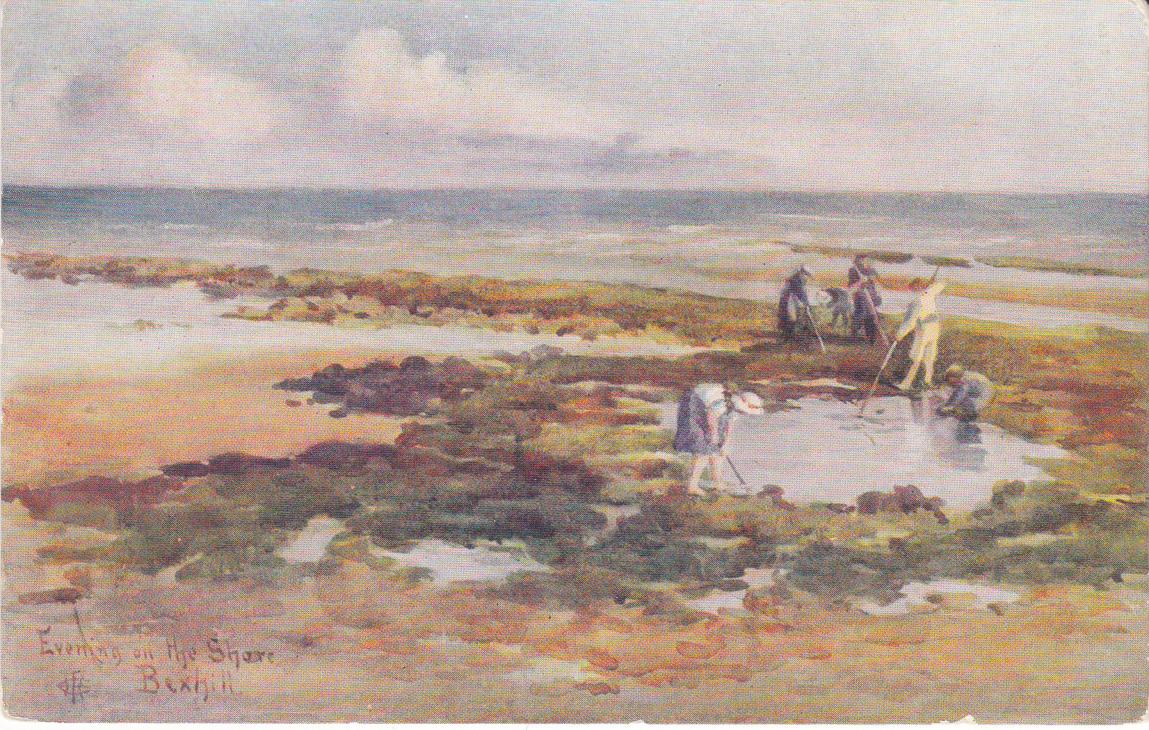 POSTCARD #451 Evening on the Shore, Bexhill [Bexhill-on-Sea, East Sussex, England]. Copyright. From the original Water Colour Drawing by Florence E. Hoare. Printed in England. 5.5" x 3.5" VG