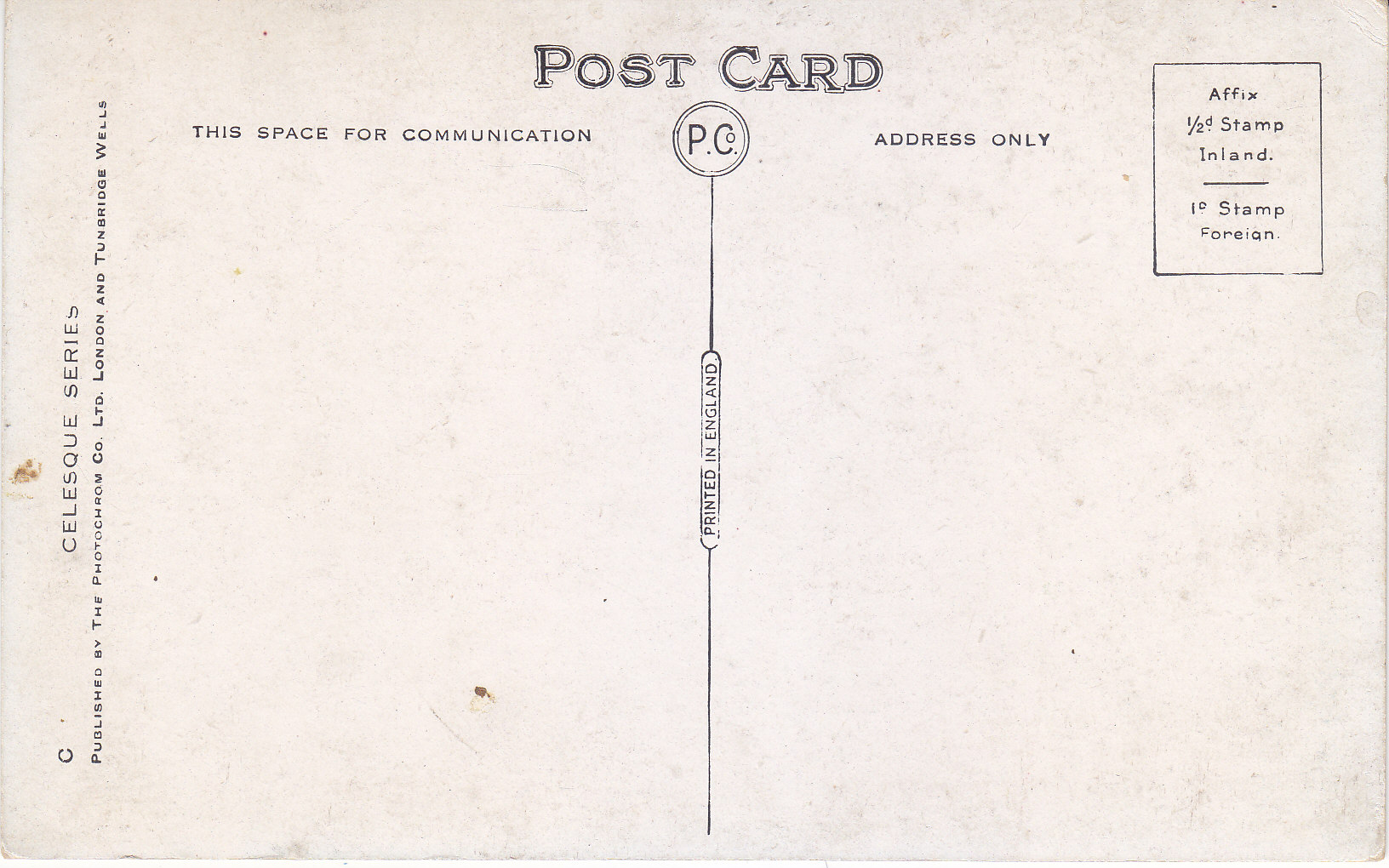 POSTCARD #457 Quaint Corners, St. Ives [Cornwall, England]. F_43110. C. Celesque Series. Published by The Photochrom Co. Ltd. London and Tunbridge Wells [England]. P.Co. Printed in England.3.5" x 5.5" GD