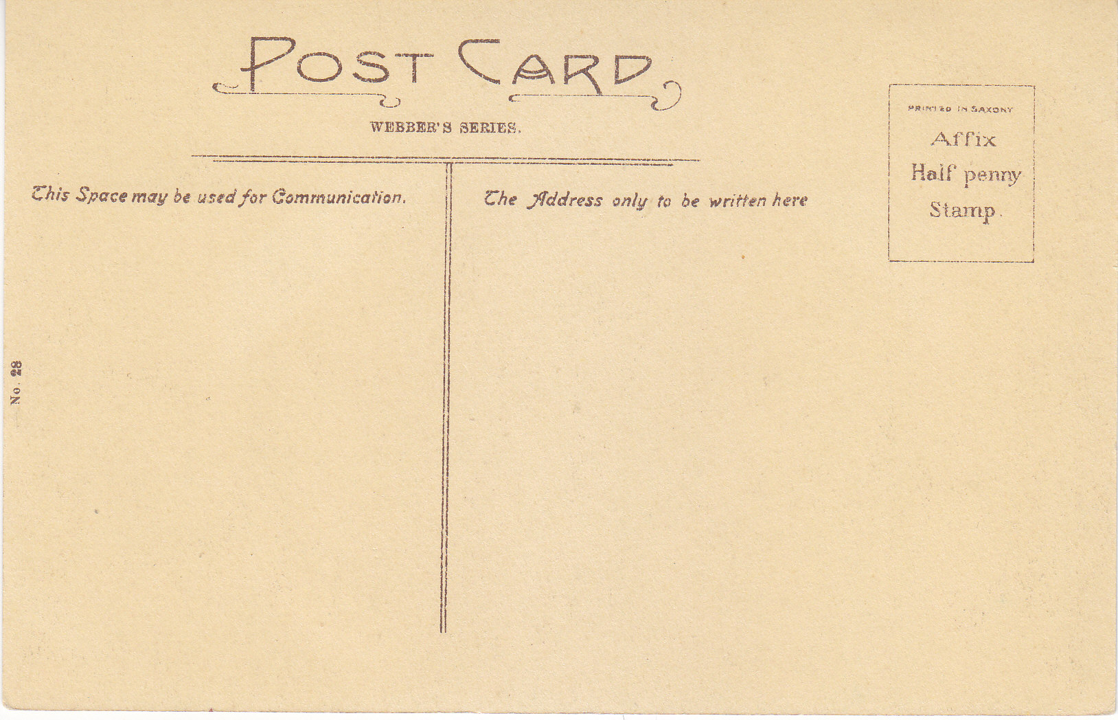 POSTCARD #458 "Sunset," Boscastle [Cornwall, England]. No. 28. Webber's Series. Printed in Saxony [Germany]. 5.5" x 3.5" EXC