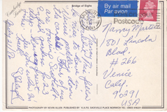 POSTCARD #161 Bridge of Sighs, [Oxford, England]. Cambridge Series. Photography by Kevin Allen. Published by K.A.P.S., Sackville Place, Norwich [England]. Tel: (0603) 616221. 6.5" x 4.25" VG