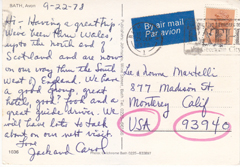 POSTCARD #416 Bath, Avon [England]. 1036. Photo: Unichrome Bath 0225-833897. Publishers: Johnsons, Wine Street, Bath [England]. Tel. 0225-66156.6" x 4" GD